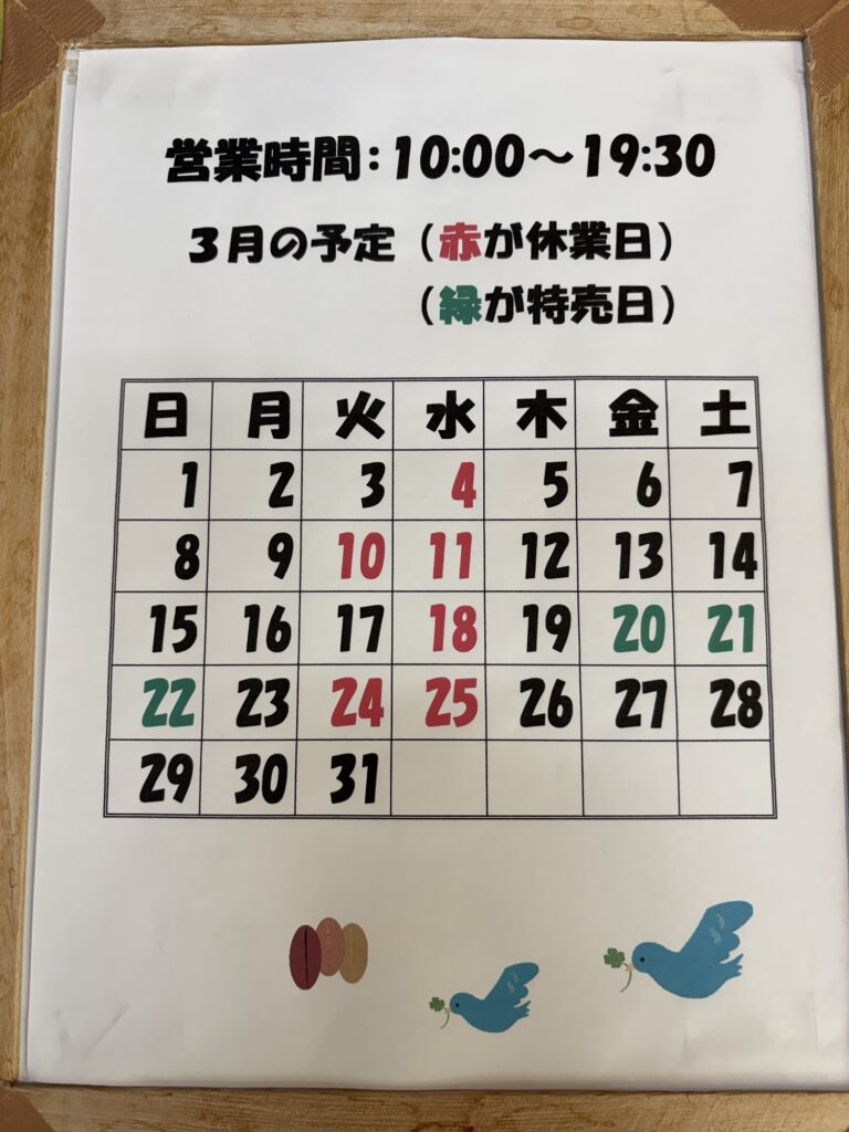 毎月、第3金曜日から3日間は特売日となっております。